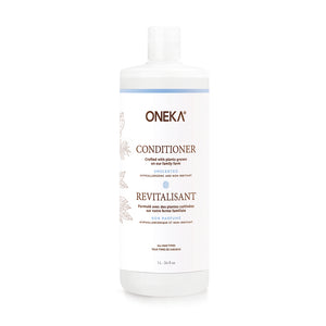 All the benefits of an Oneka conditioner: the same core botanical formula promoting healthy beautiful hair naturally, just no essential oils in this version. As part of the Oneka unscented line, it is a great option for parents who want to maintain a neutral scent around babies and small children.